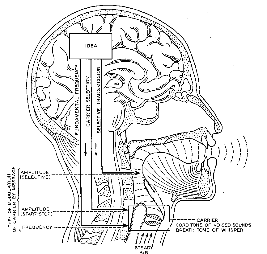 The technology of speech processing, which includes speech modeling, synthesis, encoding, and recognition, dates back to the parametric techniques introduced by Homer Dudley in the late 1930’s and early 1940’s. These methods are “parametric” in the sense that they construct a model of the acoustic properties of the human vocal tract, and then analyze speech by determining the values of the parameters of the model. Below is a rendition of the basic model from Dudley’s 1940 paper, “The Carrier Nature of Speech,” published in the The Bell System Technical Journal.